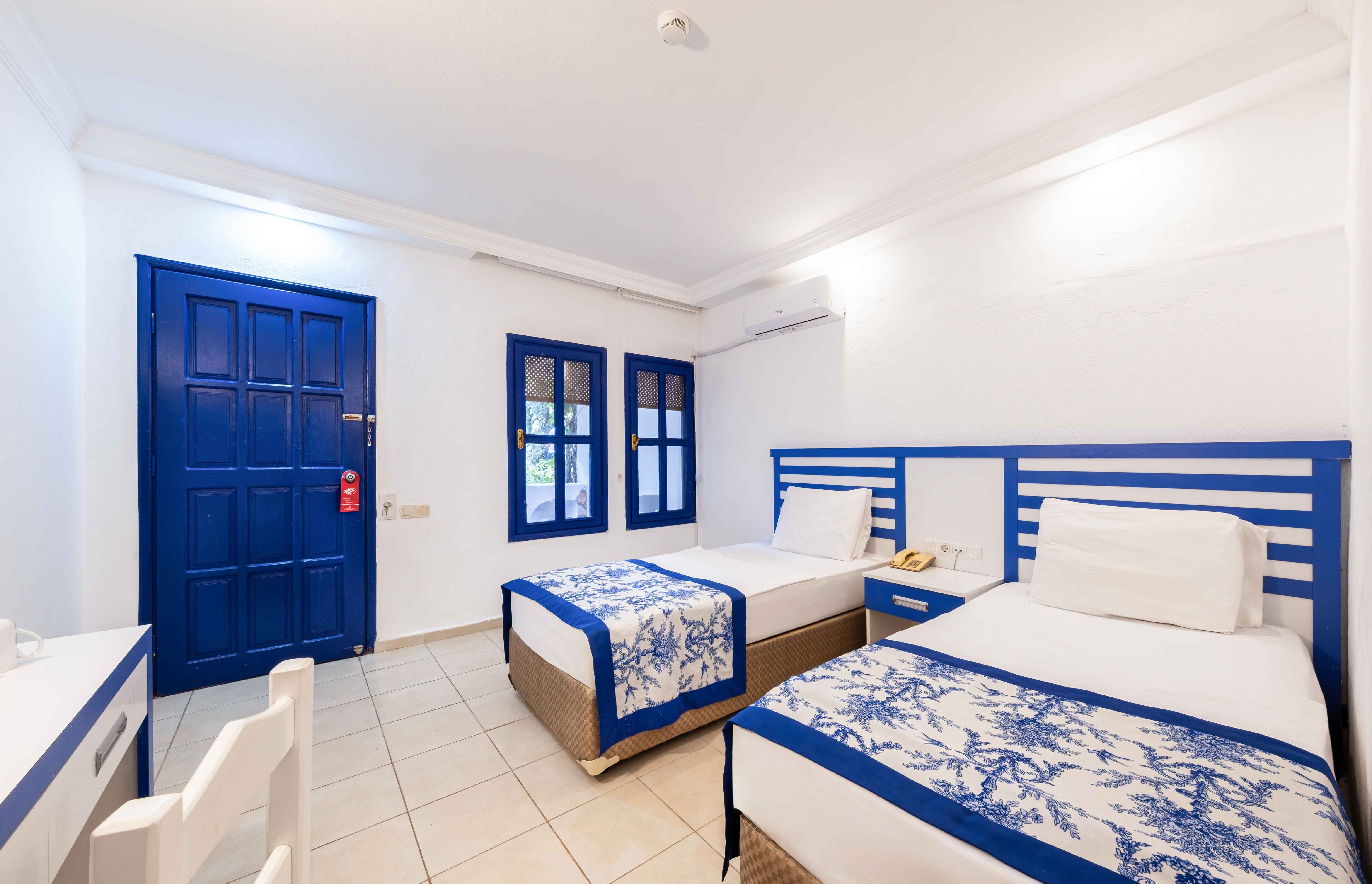 Хотелът се намира на 65 км от летище Даламан и на 214 км от летището в Анталия, на 14 км от центъра на Фетие, на 50 м от брега на морето. Построен през 1986 г, с обща площ 16 000 м². Реновиран през 2011г. Стаи: Хотелът разполага с общо 196 стаи, разположени в 11 блока , от които 28 Economy room – разположени на сутерен (17 m²), – 131 Standard room (20 m²), 29 Bunkbed room (22 m²),8 Dublex room. Всички стаи са оборудвани с климатик, LCD телевизор със сателитни канали, телефон с директно избиране, баня с душ, сешоар, мини-бар (с безалкохолни напитки), комплект за чай/ кафе, будоар, тоалетка с огледало, сейф (платен), балкон или тераса. Почти всички помещения са с ламинат/ паркет. Икономичните стаи са с фаянс и са разположени на сутерен. Почистване на стаите - всеки ден, смяна на спално бельо – 3 пъти в седмицата. В хотела: Основен ресторант, а - ла - карт ресторант (платен), 3 бара, открит основен басейн , релакс басейн, СПА център, магазини, паркинг. За децата: мини клуб (4-12г.), детски басейн, детско меню. Безплатни услуги:, СПА център , фитнес, аеробика, тенис на маса, анимация (вечерни анимации с DJ, тенис на маса, дартс, Wi-Fi интернет (в лоби). Платени услуги: Масаж, турска баня , сауна , водна топка , водна гимнастика , пилинг, фризьор, лекар, детегледачка, пералня, химическо чистене, rent-a-car. Хранене: All Inclusive: Закуска, късна закуска, обяд, снек, вечеря на шведска маса, нощна супа - в основния ресторант на хотела; местни алкохолни и безалкохолни напитки – без лимит. Диетично и детско меню. Сладкарница във фоайето на хотела - торти, чай и кафе всеки ден от 16:00 до 17:30 часа. Снек-бар (според All Inclusive концепция): Напитки 10:00-23:30ч; храна (снек) 12:30-16:00ч Плаж: Собствен – пясъчен, на 50 м от хотела. Чадъри, шезлонги и матраци на плажа и при басейна – безплатно. |