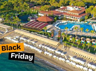 Хотелът е разположен на 35 км от летище Анталия и на 25 км. от град Анталия център, на брега на морето. Хотелът е построен през 1997г. на площ от 53 000 кв.м. последно реновиран 2010г. Стаи: Хотелът разполага с 507 стаи. Всички стаи са оборудвани с климатик, телевизор, телефон, мини бар(безплатен), сейф(безплатно), баня с душ, сешоар, балкон. Почистване на стаята – всеки ден, смяна на спалното бельо – 3 пъти седмично. В хотела: Основен ресторант, 5 а-ла-карт ресторанта(мексикански, с морски специалитети, далекоизточен, средиземноморски, барбекю), 5 бара, 3 открити басейна, 2 водни пързалки, фризьорски салон, магазини, пералня, химическо чистене За децата: 2 водни пързалки, детски бюфет, детска храна, детски басейн, детска площадка, мини клуб (4-12 год.). Безплатни услуги: турска баня, сауна, парна баня, фитнес салон, аеробика, водна аеробика, плажен волейбол, баскетбол, 2 тенис корта с твърдо покритие (през деня), тенис на маса, анимационна програма, музика на живо (в определени дни), дискотека, безжичен интернет(на основни зони). Платени услуги: масаж, наем на тенис ракети и топки, осветление на тенис кортовете, билярд, боулинг (2 пътеки), игрални автомати, моторни водни спортове, интернет кафе, детегледачка. Хранене: ULTIMATE ALL INCLUSIVE - закуска, обяд и вечеря на шведска маса, допълнителни хранения, алкохолни и безалкохолни напитки местно производство - без лимит. Плаж: Собствен плаж, пясъчно-чакълест. Чадъри, шезлонги и плажни кърпи на плажа и при басейна – безплатно. Хотелът има право да прави промени в концепцията, без да уведомява предварително туроператора за наложените промени. |