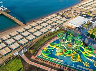 Местоположение: Намира се на 12 км. от летище Анталия, на 14 км. от центъра на Анталия, на 3 км. от центъра на Лара, на брега на морето. Той впечатлява с уникалния си басейн, голямата градина и многобройните съоръжения. Стаи: Хотелът разполага с общо 400 стаи, разположени в една 8-етажна сграда Main Building, от които 304 стандартни стаи Standard room (изглед суша или море - 28 м2), 96 семейни стаи Family room (2 стаи свързани с врата - 35 м2). Всички стаи са оборудвани с климатик, телевизор, телефон, баня с душ/вана, сешоар, минибар (безплатен), сет за кафе/чай, сейф (безплатен). На територията на хотела има: Основен ресторант, 2 а-ла-карт ресторанта (турски, средиземноморски – с предварителна резервация, срещу заплащане), снек бар (24 ч), 7 бара, дискотека, сладкарница, 2 открити и 1 закрит басейн, СПА център, аквапарк, паркинг. За децата: Детски басейн, водни пързалки, бейби клуб (0-3) с родители, мини клуб (4-7), джуниър клуб (8-12), тийн клуб (13-16), детска площадка, мини кино, мини диско, занимателни игри. Безплатни услуги: Сауна, турска баня, зона за релакс, тенис на маса, 2 тенис корта, аеробика, баскетбол, датрс, мини голф, мини футбол,водни игри, плажен волейбол, анимация, Wi–Fi (в лоби). Платени услуги: Масаж, пилинг, фризьор, доктор, детегледачка, фотограф, химическо чистене, магазини, катараман, гмуркане, сърф, кану, водни спортове, рент-а-кар. ВАЖНА ЗАБЕЛЕЖКА: Ръководството си запазва правото да прави всякакви спонтанни промени в горната концепция поради метеорологичните условия, гост заявки и форсмажорни обстоятелства и др.- без предварително уведомяване. |
