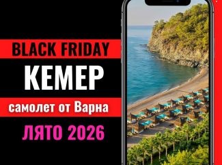 Възможност за доплащане за индивидуален - директен трансфер до хотела, с предварителна заявка към агенцията. Програма: Ден 1 Отпътуване с чартърен полет Варна- Анталия. Кацане на летище Анталия и посрещане от представител на фирмата партньор. Групов трансфер до избрания хотел. Настаняване в хотела след 14.00 ч. Ден 2 Свободен ден и/или по желание включване в допълнителни екскурзии, които се заявяват. заплащат и организират на място от местния контрагент. Ден 3 Свободен ден и/или по желание включване в допълнителни екскурзии, които се заявяват. заплащат и организират на място от местния контрагент. Ден 4 Свободен ден и/или по желание включване в допълнителни екскурзии, които се заявяват. заплащат и организират на място от местния контрагент. Ден 5 Свободен ден и/или по желание включване в допълнителни екскурзии, които се заявяват. заплащат и организират на място от местния контрагент. Ден 6 Освобождаване на хотела. Трансфер до летище Анталия в обявения час. Полет за Варна. Основна информация и допълнителни услуги: ЧЕРЕН ПЕТЪК ТУРЦИЯ ЛЯТО 2026 Кампания „Плати депозит 35% при записване и доплати до 30 дни преди отпътуване“ - валидна за резервации направени до 30.11.2025. Обявените цени са с динамично ценообразуване, в реално време и са пряко свързани с евентуална промяна в цените и условията на всеки хотел. Хотелите си запазват правото да променят или прекратяват отстъпките и промоциите по всяко време и туроператорът не носи отговорност при евентуална промяна на цената. Затова препоръчваме да се резервира веднага след избор на хотел и оферта. В цената се включва: Чартърен полет Варна - Анталия - Варна с включени летищни такси в размер на 79 евро на човек и багаж до 20 кг. чекиран и до 10 кг. ръчен (55 х 40 х 23). Разрешеният багаж за бебета до 1,99 г. е 10 кг. чекиран и до 10 кг. ръчен + бебешка количка. 7 нощувки в хотел по избор Медицинска застраховка с покритие 10 000 евро (за лица до 69,99 г.) Групов трансфер летище - хотел - летище Изпращане на летището от представител на Туроператора Обслужване на място от представител на местната фирма партньор В цената не се включва: Мед. застраховка с покритие 10 000 евро за лица от 70 до 79 г. - доплащане 25 лв Мед. застраховка с покритие 10 000 евро за лица над 80 г. - доплащане 40 лв Застраховка "Отмяна на пътуване" (виж условията по- долу) Такса гориво (виж забележката по- долу). Допълнителните екскурзии, извън пакетните цени, посещенията на туристически обекти и входни такси Хотели по програма