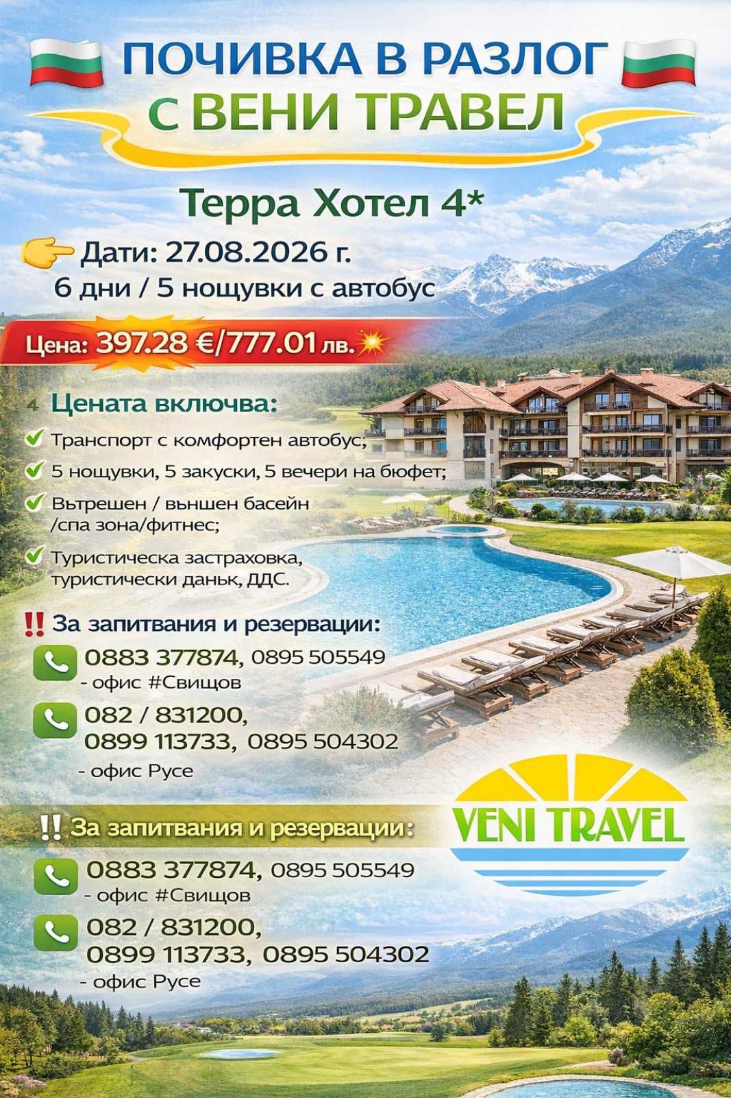 ПОЧИВКА В РАЗЛОГ С ВЕНИ ТРАВЕЛ -лято -2026г!