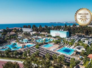 Хотелът се намира на 80 км. от летище Измир, на 115 км. от летище Милас, на 8 км. от центъра на Кушадасъ, в близост до големи търговски обекти, на брега на морето, в района на Лонг бийч. В близост до хотела се намират античният град Ефес, Къщата на Дева Мария, Милет и още редица исторически забележителности наблизо. Националният парк „Дилек“ - един от най-големите и красиви национални паркове в Турция, се намира на разстояние от 16 км. Хотелът е разположен сред палмови и овощни дървета на територия над 52000 м². Изцяло обновен и реновиран между 2013 г. и 2015 г Стаи: Хотелът разполага с 354 стаи, от които 250 стандартни стаи с изглед градина или с изглед море (20-23 кв.м), 68 фамилни стаи (две свързани помещения и с две бани, 44-46 кв.м.), 30 стандартни стаи с джуетажни легла (23 кв.м), 4 апартамента (спалня, всеоткриткидневна, баня с джакузи, 44 кв.м) и 4 стаи за инвалиди. Всички стаи са оборудвани с климатик, телевизор, телефон, баня с душ, сешоар, сет за чай/кафе, минибар (безплатен), сейф (безплатен), балкон или тераса, Wi-Fi интернет. Почистване на стаите – всеки ден, смяна на бельото – 2 пъти в седмицата, смяна на кърпите – 3 пъти в седмицата. В хотела: Основен ресторант, 3 а-ла-карт ресторанта (рибен - Blue Beach Club, интернационален - Il Pirata A La Carte, турски - Kebab House - 1 безплатно посещение на един от тях, при минимум 7 нощувки престой, с предварителна резервация), 3 снек бара, 10 бара, сладкарница, 2 открити басейна: релакс басейн Atlantis (15+) и активити басейн Maio, СПА център, амфитеатър (където се провежда богата анимационна програма за деца и възрастни), дискотека, паркинг, магазини. За бебета: стерилизатор в основния ресторант, бебешки пакет (бебешка вана, бебешки звуков монитор и нагревател за шишета се предоставят в стаята - безплатно). За децата: детски басейн, водни пързалки, аквапарк, детска площадка, мини клуб (4-12 г.), игрална зала, кино зала, анимация. Безплатни услуги: турска баня, сауна, парна баня, фитнес (16+), дартс, тенис на маса, тенис корт, плажен волейбол, баскетбол, бандминтон, мини голф, водна топка, аеробика, пяна парти, йога за майки и бебета, степ, боча, шах, анимация, музика на живо, тематични партита, Wi-Fi. На разположение на гостите на хотела е аквапарк „Tortuga Water & Theme Park“ - първият тематичен аквапарк в района на Кушадасъ. Кръстен на пиратския остров Tortuga, един от карибските острови в Атлантическия океан. Tortuga е остров, който векове наред не е напускан от пирати и е бил предмет на безброй легенди. Водният парк Tortuga, проектиран въз основа на тези легенди, е украсен с зони и дейности, които са толкова приключенски, колкото и легендите, на които е кръстен, пълни с адреналин и неограничено забавление. „Tortuga Pirates ConnectKids Club“ е мястото за деца на възраст между 4 и 12 години. С всички забавни, спортни, творчески и културни дейности, децата в Tortuga Pirates ConnectKids Club не само ще се забавляват, но и ще спортуват и ще учат под професионално наблюдение. Построен на площ от 12 000 м², разполага с 2 открити басейна, детски басейн с атракции за най-малките, басейн за тинейджъри с пиратски кораб, 11 пързалки (7 умерени, 4 екстремни, центрофуга) и атракцията Мързеливата река. Консумацията на безалкохолни напитки в аквапарка е безплатна. Платени услуги: масажи, фризьор, магазини, пералня, химическо чистене, лекар, детегледачка, моторни водни спортове, уроци по уиндсърф, уроци по гмуркане, осветление за тенис корт, зала за електронни игри, фото