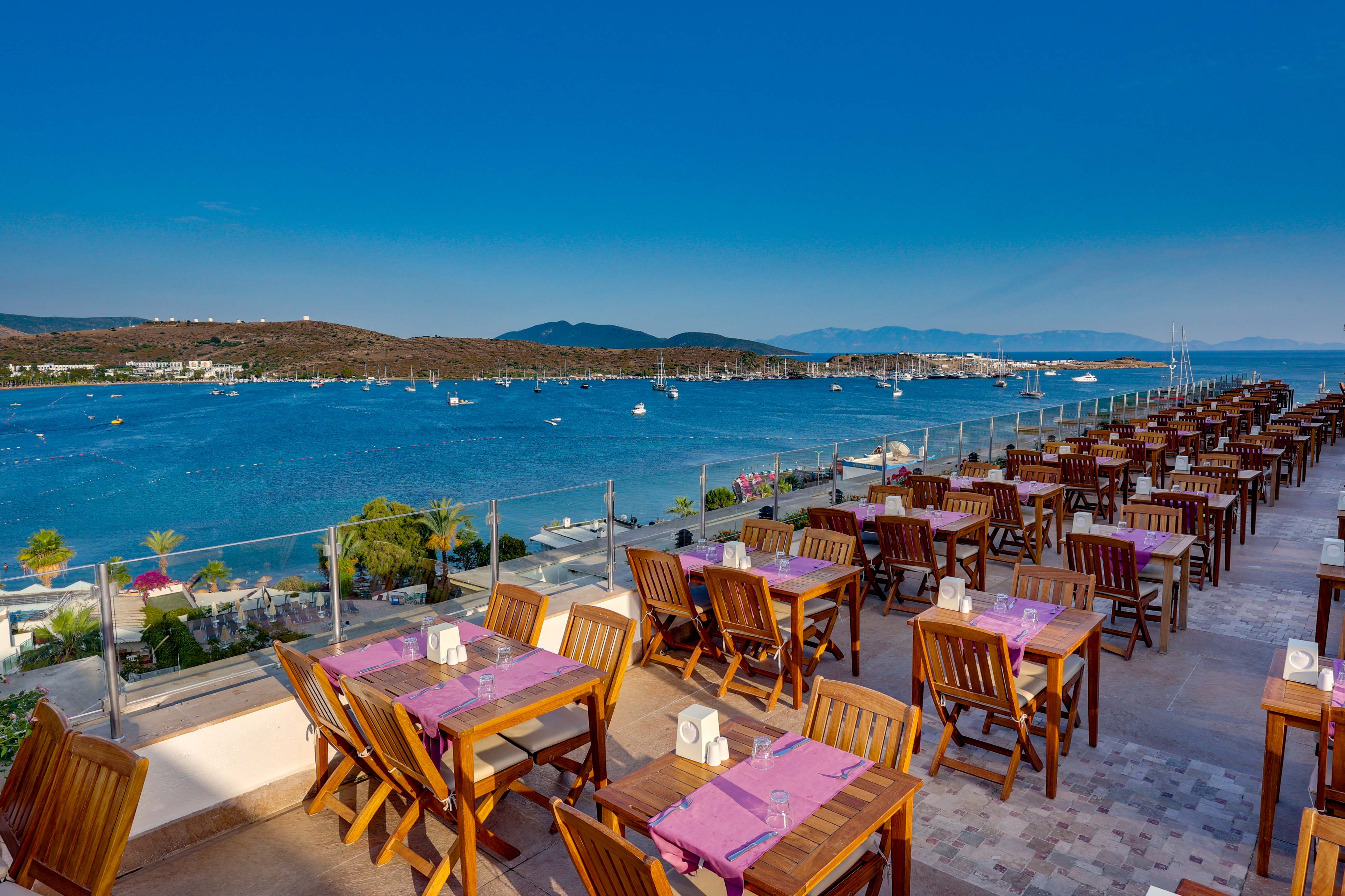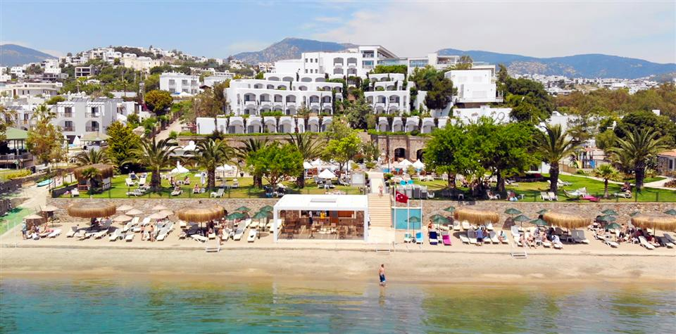 Хотелът е разположен на 35 км от летище Милас и на 3 км от центъра на гр. Бодрум, в района на Гюмбет, на брега на морето. Разполага с обща площ от 16 000 м2, последна реновация е направена през 2018 година. Автобусна спирка на 50 м от хотела. Частична реновация на стаите в основната сграда и клубната част, както и на основния ресторант през 2023г. Стаи: Хотелът се състои от една основна 5-етажна сграда с 4 асансьора и разполага с общо 351 стаи с гледка градина или море, от които 259 са Standard Room (18-20 m²), разположени в основната сграда и 92 Relax Room (20-28 m²), разположени в клубната част на хотела, в двуетажни къщички. Всички стаи са оборудвани с: климатик, телевизор, телефон, баня с душ или вана, сешоар, мини бар (безплатен при настаняване), балкон или тераса, WI-FI (безплатно). Почистване на стаите - всеки ден, смяна на спалното бельо - 2 пъти в седмица. В хотела: Основен ресторант с панорамна гледка към залива Гюмбет, 3 ресторантa а-ла-карт (рибен, италиански и турски - нужна е предварителна резервация - работят от 15.05 до 15.10), 6 бара (1 от тях е отворен 24 часа), дискотека, 1 открит басейн, закрит басейн, 3 конферентни зали. За децата: мини клуб (за възраст между 4 и 12 г.), детско креватче, детски бюфет, детска площадка. Безплатни услуги: сауна, турска баня, парна баня, аква аеробика, фитнес, дартс, тенис на маса, лека анимация, Wi-Fi на цялата територия на хотела. Платени услуги: сейф, химическо чистене и пране, масаж, джакузи, водни спортове, детегледачка, румсървис, доктор. Хранене: Ultra All Inclusive - закуска, обяд, вечеря и междинни хранения на шведска маса. Местни и някои вносни алкохолни и безалкохолни напитки - без лимит (съгласно концепцията на хотела). Турското кафе се предлага безплатно. Плаж: Собствен пясъчен плаж. Чадъри, шезлонги, матраци и кърпи на плажа и при басейна - безплатно. Хотелът има право да прави промени в концепцията, без да уведомява предварително туроператора за наложените промени. |