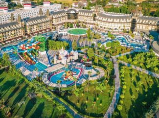 Разположение Намира се на 40 км. от летище Анталия, на 30 км. от центъра на Анталия, на 8 км. от центъра на Кемер, в селище Гюйнук, на 168 м. от брега на морето. Построен през 2007г. с обща площ 100.000 м2, реновиран през 2016-2017г. В стаите Хотелът разполага с общо 589 стаи, разположени в една основна сграда, от които 269 Standard room land view (изглед суша - 34м2), Standard room sea side view (изглед море - 34м2), 126 Family room (тип дублекс на две нива - 50м2), 49 Pool Family room (с гледка басейна, 2 спални с/без междинна врата - 40 м2). Всички стаи са оборудвани с климатик, телевизор, телефон, баня с душ/вана, сешоар, минибар (безплатен), сет за кафе/чай, сейф (безплатен). Почистване на стаите и смяна на кърпите - всеки ден, смяна на спалното бельо – 2 пъти седмично. На територията на хотела Основен ресторант, 3 а-ла карт ресторанта (италиански, турски, рибен - с предварителна резервация срещу заплащане), снек бар (пица, пиде, гюзлеме), 4 бара (1 от които на плажа), сладкарница, 5 открити и 1 закрит басейн, 7 водни пързалки, СПА център, открита дискотека, кино зала, паркинг, конферентна зала. За децата: детски басейн, водни пързалки, детска площадка, мини клуб (4-12), детски ресторант, детегледачка (платено). Безплатни услуги: Сауна, турска баня, парна баня, релакс зона, фитнес, дартс, тенис на маса, тенис корт, плажен волейбол, баскетбол, мини футбол, боча, аеробика, караоке, шах, анимация, тематични вечери. Платени услуги: Масаж, пилинг, магазини, лекар, фотограф, осветление на тенис корт, водни спортове, рент-а-кар. Хранене Ultra All Inclusive – закуска, обяд и вечеря на шведска маса, междинни хранения, алкохолни и безалкохолни напитки – без лимит (съгласно концепцията на хотела). Плаж На 168 м. от хотела, собствен, пясъчо - чакълълест, със сертификат "Син флаг". Бар на плажа - безплатно. Чадъри и шезлонги на плажа и на басейна - безплатно. Плажни кърпи - безплатно. Кабани - срещу заплащане. |