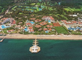 На 10 км. от Белек и на 25 км. от летището в Анталия. Стаи Всяка стая е оборудвана с климатизация, сателитна телевизия, минибар, телефон, сейф, сешоар, халат и чехли. Стаите са с балкон/тераса. Плаж Собствен плаж с платформа. Ресторант Основен ресторант, а ла карт ресторанти за китайска, турска, италианска кухня, бар на плажа, бар край басейна, нощен бар, лоби бар. Развлечения Вътрешни и външни басейни за деца и възрастни - с олимпийски и полуолимпийски размери, аквапарк, анимация, футбол, баскетбол, гимнастика, зумба, стречинг, уроци по танци. |