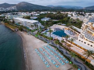 Хотелът е разположен на 50 км от летище Милас, на 20 км от центъра на Бодрум, в района Тургутрейс, на 1 км от центъра на Тургутрейс, на брега на морето. Разполага с площ от 30.000 m², последно реновиран изцяло през 2022/3 година.