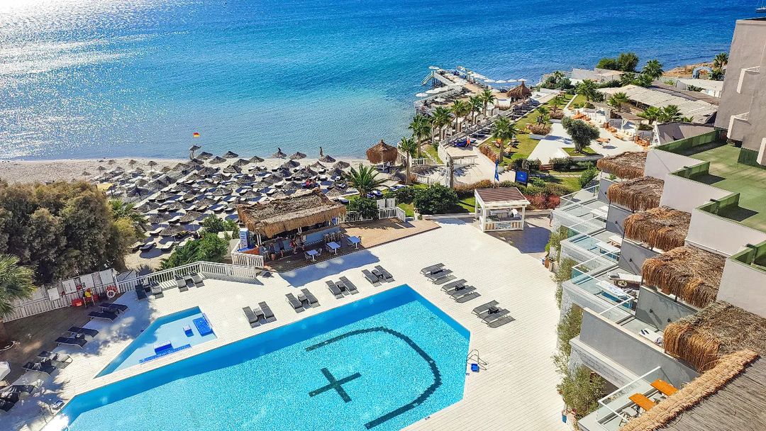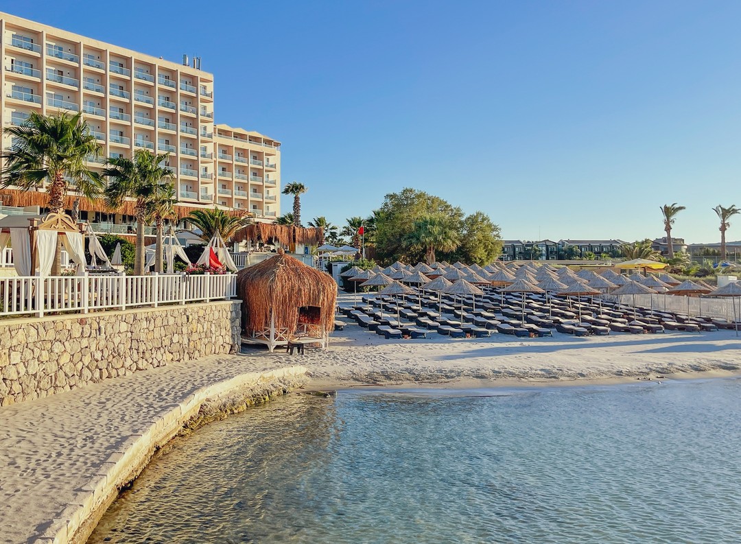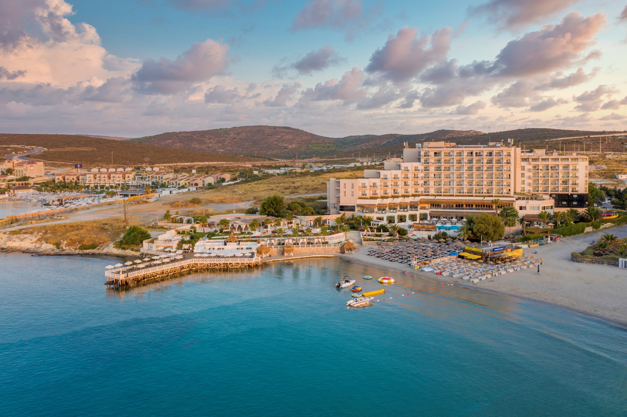 Хотелът се намира на 89 км от летище Измир, на 12км. от Чешме, на 4 км. от курорта Алачатъ, на брега на морето. Стаи: Хотелът разполага със 190 елегантно обзаведени стаи, от които делукс стаи с изглед градина /30-32 кв.м/, делукс стаи с частичен изглед море /30-32 кв.м/ и делукс стаи с изглед море /30-32 кв.м/, супериор с изглед море /35-37 кв.м/ , фамилен апартамент с изглед море /две стаи - 58-60кв.м/, суит тераса с изглед море /55-60 кв.м/, 8 апартамента с изглед море /63-65 кв.м/, 1 стая за хора с увреждания. Всички стаи са оборудвани с климатик, телевизор, телефон, баня с душ/вана, сешоар, минибар /платен/, сейф /платен/. Повечето стаи са с балкон или тераса. В хотела: Oсновен ресторант, а-ла карт ресторант, 2 барa, сладкарница, открит басейн, СПА център, сауна, турска баня, фитнес, интернет кафе /срещу заплащане/, конферентна зала, ТВ зала, амфитеатър, фризьорски салон, магазини, паркинг, Wi-Fi интернет в лобито /безплатно/, жива музика. За децата: детски басейн, детски водни пързалки, детска площадка, мини клуб/4-12г./. Плаж: собствен, пясъчен. Чадъри и шезлонги при басейна и плажа - безплатно. Хранене: ВВ - закуска |