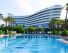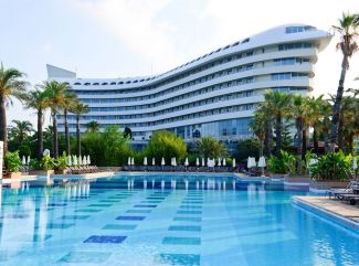 Concorde De Luxe Resort Hotel се намира на брега на морето, на 16 км от центъра на Анталия, на 10 км от летището. Стаи Хотелът разполага със стандартни, двойни, фамилни, суити. Всяка стая има балкон, климатик, директен телефон, сателитна телевизия, музикален канал, мини бар, сешоар, сейф. Плаж Собствен плаж със син флаг. Ресторант Настаняване на Ultra All Inclusive база на отворен бюфет в основен ресторант. 6 а-ла-карт ресторанта: италиански, източен, грил, морски, турски, барбекю. Снек бар, гьозлеме, кафене, 9 бара. За децата Детски клуб, анимация - състезания и игри, детски басейн, площадка за игра. Спорт5 външни басейна - с джакузи, детски, с пързалки, 2 вътрешни. Фитнес, тенис на корт, степ, аеробика, водна гимнастика, волейбол, баскетбол, футбол, мини футбол, мини голф, тенис на маса, бадминтон, мини футбол, боулинг, снукър, водни спортове, училище за гмуркане, СПА център. Развлечения Анимация, интернет кафе, дискотека, конферентни зали, игрална зала с боулинг и билярд, рент-а-кар. |