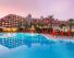 На брега на морето, на 30 км. от летището в Анталия. Стаи 384 стандартни стаи с площ 29 кв. м. с двойно или 2 отделни легла. Изглед море или градина. 4 фамилни стаи с площ 64 кв. м. 2 спални и 1 дневна. С изглед море или градина. 4 детски суити с площ 49 кв. м. 1 спалня с двойно легло и 1 спалня с двуетажно легло. Всички стаи са с изглед море. 15 джуниър суити с площ 55 кв. м. с 1 спалня с двойно легло и дневна. Стаите са с изглед море. 5 синиър суити с площ 54 кв. м. със спалня, дневна и джакузи в банята. Стаите са с изглед море. 2 кинг суити с площ 134 кв. м. със спалня, джакузи, салон. Стаите са с изглед море. 5 стаи за трудноподвижни хора с площ 29 кв. м. и специално оборудвана баня. Стаите са с изглед градина. Всички стаи са с балкон/тераса, централна климатична система, сешоар, сейф, телефон, минибар, сателитна телевизия, сет за кафе и чай, тоалетни принадлежности. Плаж Собствен пясъчен плаж с дължина 300 м. Ресторант Основен ресторант, а ла карт ресторанти - италиански, мексикански, рибен, азиатски и суши, турски, снек ресторант, сенк бар, бар на басейна, плажен бар, лоби бар, витаминен бар, нощен клуб. Развлечения "Тих" басейн за възрастни и за деца, басейни за деца и възрастни с анимация, вътрешен басейн за децаи за възрастни, аквапарк, дневна анимация - пилатес, сутрешна гимнастика, плажен волейбол, дартс, тенис на маса, миниголф, аеробика, вечерна шоу програма, музика на живо, караоке, шопинг център, детски клуб, фитнес зала, спа център. |
