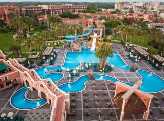 Club Mega Saray Hotel се намира на 29 км от летището, на 35 км от Анталия, в района богат на културни и природни забележителности. Стаи Хотелът разполага със стандартни, семейни, суити и джакузи стаи. Всяка стандартна стая разполага с телевизор, мини бар, сейф и балкон и с гледка към градината. Плаж 400 м плажна ивица с пясък и камъчета с Blue Flag и безплатно ползване на постелки, хавлии. Ресторант Основен ресторант на All Inclusive база. 6 а-ла-карт ресторанта - турски, италиански, китайски, барбекю, рибен, мексикански, детски ресторант, 9 бара. СПА Турска баня и сауна. СпортГлавен басейн с водни пързалки, релакс басейн, вътрешен басейн и детски с безплатно ползване на шезлонги, матраци и чадъри. Водни спортове, тенис на маса, степ аеробика, тае бо, плажен волейбол, баскетбол, мини футбол, бадминтон, спортни състезания. |