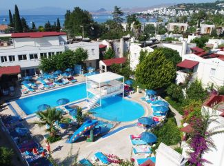 Само на 2 км. от Гюмбет и на 6 км. от Бордум, летище Милас е на 42 км. Стаи Стандартни стаи, фамилни стаи и студиа. Стаите са с изглед басейн или градина. Всички са оборудвани с климатик, телевизор, сешоар, малък хладилник. Плаж Хотелът разполага със собствена зона на плажа Bitez, чадърите и шезлонгите в нея са безплатни. Ресторант Основен ресторант, лоби бар, бар на басейна. Развлечения Основен басейн, детски басейн с водни пързалки, възможност за водни спортове. |