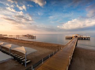 Новогодишна вечеря на 31.12.2025 За резервации, направени до 30.10.2025 г.: Възрастен - 150 евро Дете от 0 до 11,99 г. - безплатно (в отделна детска зала) За резервации, направени от 01.11.2025 г.: Възрастен - 200 евро Дете от 0 до 11,99 г. - безплатно (в отделна детска зала) Децата не се допускат до основната зала. Всеки хотел определя индивидуално цените, условията, начина на сервиз и забавленията на новогодишната нощ. Местоположение: Хотелът се намира на 27 км от летище Анталия, на 35 км от центъра на Анталия, в района на Белек, на брега на морето. Построен през 2006 г. с обща площ от 120 000 м2, последно реновиран през 2013 г. Стаи: Хотелът разполага общо с 502 стандартни стаи и 63 фамилни стаи. Всички стаи са оборудвани с: климатик, сателитна телевизия, телефон, баня с душ или вана, сешоар, минибар (безплатно), балкон, интернет. Почистване на стаите – всеки ден. В хотела: Основен ресторант, 6 а - ла - карт ресторанта (с предварителна резервация), 8 бара, VIP ресторант, дискотека, 4 открити и 2 закрит басейна, 4 водни пързалки, магазини, Спа център, конферентни зали, паркинг. За децата: Детско меню, детска площадка, бебешки клуб (0-3 г.), детски и тийнейджърски клуб (4-17 г.), 2 детски басейна, анимация. Безплатни услуги: Турска баня, сауна, джакузи, фитнес, кино, дартс, тенис на маса, тенис, баскетбол, аеробика, водна гимнастика, йога, дискотека, анимация, интернет. Платени услуги: Масаж, салон за красота, магазини, билярд, боулинг, интернет кафе, компютърни игри, видеоигри, химическо чистене, лекар, детегледачка, водни спортове. Хранене: ULTRA ALL INCLUSIVE – закуска, обяд, вечеря на шведска маса, междинни хранения, алкохолни и безалкохолни напитки - без лимит (съгласно концепцията на хотела). Плаж: ПЛАЖ: Собствен, пясъчен. Чадъри, шезлонги и матраци на плажа и при басейна – безплатно, плажни кърпи – безплатно. Хотелът има право да прави промени в концепцията, без да уведомява предварително туроператора за наложените промени. |
