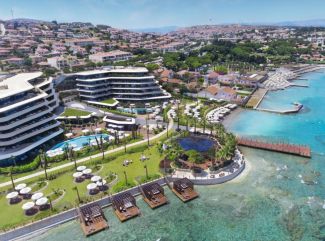 Хотелът се намира на 90 км от летище Измир, на 1 км от центъра на Чешме, на 2 км от замъка на Чешме и на 2.5 км от яхтеното пристанище, на брега на морето. Стаи: Хотелът разполага със 105 стаи, всички оборудвани с климатик, телевизор, телефон, баня с душ/вана, сешоар, тоалетни принадлежности, мини бар, сет за чай/кафе, сейф, балкон, Wi-Fi интернет. Почти всички стаи са с изглед морето. Почистване на стаите - всеки ден, смяна на спалното бельо и кърпите - 2 пъти в седмицата. В хотела: Основен ресторант, а-ла карт ресторант, снек бар, 3 открити басейна (1 отопляем и 1 термален), 2 закрити басейна (1 отопляем), СПА и уелнес център, фитнес, уиндсърфинг, паркинг, рент-а кар, Wi-Fi интернет. За децата: детски басейн, детска площадка, детски клуб, детски бюфет, детегледачка (срещу заплащане). Хранене: ВВ - закуска Плаж: Собствен. Чадъри, шезлонги и матраци на плажа и при басейна - безплатно. Плажни кърпи - безплатно. |