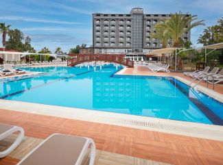 Летището в Анталия е на 54 км., а Сиде на 5 км. Стаи Стандартни и фамилни стаи. Разполагат с климатик, телефон, сателитна телевизия, малък хладилник, сешоар. Фамилните стаи са с две помещения, свързани с врата. Плаж Собствен пясъчен плаж на 400 м. от хотела, предлага се шатъл. Ресторант Основен ресторант с отворен бюфет, сладкарница, бар на плажа, лоби бар, бар край басейна, дискотека. Развлечения Външен и вътрешен басейн, детски басейн, спортни занимания, тенис на маса, билярд, настолни игри. Турска баня, сауна. Детски клуб. |