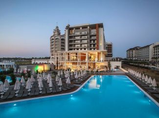 На 75 км. от летището в Анталия и на 8 км. от Сиде, Манавгат е на 4 км. Стаи Стандартни стаи (35 кв. м.), стаи с директен излаз на басейна (35 кв. м.),, фамилни стаи (55 кв. м.). Оборудвани са с климатик, минибар, сет за кафе и чай, сейф. Стаите имат балкон/тераса. Плаж Собствен плаж на 300 м. от хотела. Ресторант Основен ресторант с отворен бюфет, снек ресторант край басейна, снек ресторант на плажа, а ла карт ресторанти - турски и средиземноморски. Лоби бар, бар на плажа и басейна, тераса-бар. Развлечения Вътрешен и външен басейн, детски басейн, басейн за деца и възрастни на терасата, аквапар. Спортни занимания, анимация, шоу програми, музка на живо, тематични вечери. Турска баня, сауна, парна баня, фитнес. Детски клуб 4-12 г. |