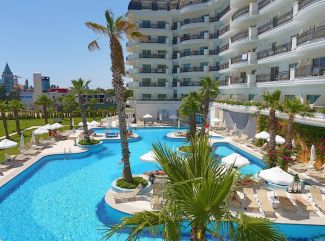 На 90 км. от летището в Анталия и на 10 км. от Манавгат. Открит през 2014 г.и реновиран през 2023 г. Стаи Стаите са с площ от 28 до 110 кв. м. Фамилните стаи се състоят от 2 спални с коридор помежду си. Премиум суитите са с 1 спалня и дневна, а Кралският апартамент е с 2 спални и дневна. Всички стаи са с балкон, централна климатична система, сателитна телевизия, сейф, минибар, сешоар, сет за чай и кафе. Плаж Собствен плаж с дължина 250 м., безплатно ползване на чадъри и шезлонги. Шатрите са с доплащане. Ресторант Ultra All Inclusive база - основен ресторант на бюфет. А ла карт ресторанти - турски, италиански, азиатски, рибен. Сладкарница, гьозлеме, снек ресторант. Лоби бар, ирландски пъб, диско бар, бар на плажа, бар на басейна, витаминен бар. Развлечения Вътрешен и външен басейн, дневна анимация и вечерни забавления, аеробика, гимнастика, игри в басейна, плажен волейбол, турска баня, сауна, фитнес, билярд, тенис на маса. |