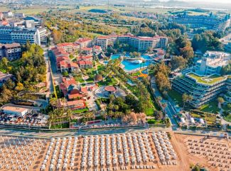 На 60 км. от летище Анталия и на 3 км. от Сиде. Стаи Супериорни стаи - с изглед градина (land view) и страничен изглед море, площ 33 кв. м., разположени в основната сграда. Делукс стаи - с изглед море, площ 33 кв. м., разположени в основната сграда. Суити - между 45-57 кв. м. Всички стаи са оборудвани с централна климатична система, телефон, сателитна телевизия, сешоар. Разполагат с балкон/тераса. Плаж Собствен пясъчен плаж, с безплатно използване на чадъри и шезлонги. С платформа и зона за възрастни. Ресторант Основен ресторант - All Inclusive база с бюфет. А ла карт ресторанти - интернационален, турски, източен, средиземноморски. Барове - лоби бар, бар край басейна, плажен бар, диско бар. Развлечения Основен външен басейн, детски басейн, басейн с водни пързалки, плажен волейбол, тенис на корт, мини голф, водна гимнастика, тенис на маса, дартс, йога. Детски клуб за деца 4-7 г., забавления за младежи 8-11 г. и тийнейджъри 12-18 г. СПА център. |