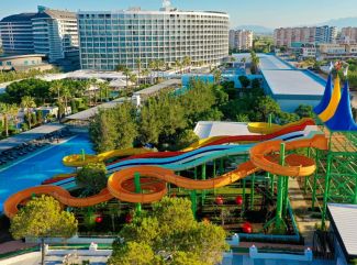 На 12 км. от летището в Анталия и на 14 км. от центъра на Анталия, разположен на площ от 40 хил. кв. м. Стаи Стандартни стаи - 28 кв. м. с изглед море Фамилни стаи - 35 кв. м. с изглед градина, с две помещения, свързани с врата. Всички стаи са с балкон, минибар, сет за топли напитки, сателитна телевизия, централна климатична система, сейф, сешоар, тоалетни принадлежности. Плаж Собствен плаж с дължина 137 м. и платформа. Безплатно ползване на чадъри и шезлонги. Ресторант All Inclusive база - основен ресторант с отворен бюфет. А ла карт ресторанти - турски, морски, фаст фууд бистро. Снек бар-ресторант на басейна и плажа, лоби бар, пианобар, дикотека, бирария. За децата Детски клубове за различни възрасти - 0-3 г., 4-7 г., 8-12 г., 13-16 г. Интернет кафене, детска дискотека, кино, тематични забавления и партита, площадка за игра. СПА Безплатно ползване на турска баня, сауна, релакс стая. С доплащане - масажи, терапии и процедури, фризьор и маникюр. Развлечения Външни басейни за възрастни и за деца, вътрешен басейн, дневна анимация, вечерни шоу програми, тематични партита, гала вечер, музика на живо, дискотека, бордни игри, дартс, баскетбол, минифутбол, плажен волейбол, аеробика, тенис на маса, тенис на корт, водни спортове. |