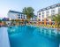 Хотелът се намира на 43 км от летище Даламан, на 17 км от Олудениз и Каякьой, на 7 км от центъра на Фетие, на брега на морето. Стаи: Хотелът разполага с 6 типа помещения: deluxe room - land view (25-30 m2 с макс.капацитет 2+1/ 3+0), deluxe room - side sea view (25-30 m2 с макс.капацитет 2+1/ 3+0), deluxe room - sea view (25-30 m2 с макс.капацитет 2+1/ 3+0); deluxe roof room (20-25 m2 с макс.капацитет 2+1, балкон с панорамна гледка) ; deluxe family room (35-40 m2 с макс.капацитет 3+1/ 4+0 с едно двойно легло и 2 единични); deluxe suite connected rooms (55-60 m2 с макс.капацитет 4+2; с 2 отделни спални, балкон с панорамна гледка море) Всички стаи са оборудвани с климатик, телевизор, телефон, диван, минибар, сет за чай и кафе, баня с душ кабина, Wi-Fi интернет. Почитване на стаите - всеки ден; смяна на чаршафи - на всеки 2 дни. В хотела: Основен ресторант с капацитет 300 души, а-ла-карт ресторант, лоби бар, пул бар, снек бар, бар ресторант Vertex, градина, тераса, сезонен открит плувен басейн на 3 нива, денонощна рецепция. Безплатно: сауна, турска баня, фитнес, гимнастика, детска площадка, детски клуб, тенис на маса, шах. Срещу заплащане: масаж, рум сървиз, пране, гладене, химическо чистене; рент-а-кар. Хранене: Ultra All Inclusive - закуска, обяд и вечеря на шведска маса, междинни хранения, алкохолни и безалкохолни напитки - без лимит (съгласно концепцията на хотела). Плаж: Плаж: хотелът се намира на 1 минута пеша от пясъчен плаж Calis. Шезлонги, чадъри и хавлии - безплатно на плажа и при басейна. |