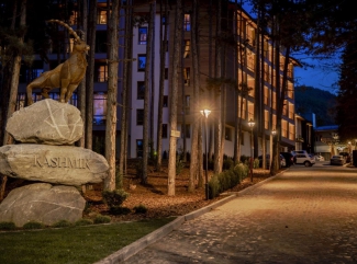 Велинград, България Kashmir Wellness & Spa Hotel е разположен сред красива борова гора, над езерото Клептуза във Велинград. Изграден върху десетилетия история, носещ топлината на миналото и обещаващ да бие с пулса на настоящето и бъдещето комплексът съчетава безкомпромисен лукс, прецизен дизайн и мисъл към всеки детайл! Естествени материали, модерни решения и водещи иновации са готови да Ви посрещнат и пренесат в свят само за Вас. Да, това е идеята - само за Вас! Палитра от вкусове и аромати, събрани от всички краища на света. Няколко различни заведения ще бъдат Ваш съюзник, по време на престоя Ви. Ресторант Pashmina разполага с 220 вътрешни места и 120 външни места, разположени на панорамна тераса с гледка към емблематичното езеро Клептуза. Разположен на ниво Рецепция, Lobby bar & Lounge е готов да задоволи всички Ваши желания, дори и тези, за които не подозирате. Още две местенца отварят врати за Вас - Whiskey Club и Social Bar. Селекция от отбрани напитки и пури ще превърнат момента в незабравимо преживяване. Партия шах, покер турнир с приятели или просто разговор - решавате Вие. Описание на стаите: Хотелът разполага със 115 помещения за настаняване. Всички те са с изглед към гората, спалня 180/200, разтегателен диван/фотьойл, баня с душ кабина, балкон, висококачествено бельо, луксозни халати и чехли, климатизация, кафе машина и термокана, Rituals козметика за баня, сейф, минибар, високоскоростен Wi-Fi. Двойна стая Делукс (29 - 39 кв.м.). Едноспален апартамент Премиум (50 - 70 кв.м.) - две отделни помещения - спалня и хол, разделени с врата помежду си. Двуспален апартамент Премиум (80 кв.м.) - три отделни помещения - две спални и хол. Спорт / Забавления: Kashmir Wellness & Spa е място, специално създадено за Вас! Създадохме за Вас иновативна Wellness и Spa концепция, като разработихме пространства, терапии и програми, посветени на здравето, красотата, свежия външен вид и вътрешния релакс - безкомпромисната грижа, която заслужавате! Тук ще откриете: вътрешен минерален басейн, вътрешен релакс басейн, външен минерален басейн, външен панорамен басейн, вътрешни джакузита, солна стая, арома парна баня, солна парна баня, мека пара, Горска къща, горски, минерални извори, финландска сауна, арома сауна, инфрачервена сауна, билкова сауна, зона за релакс и фитнес. Описание