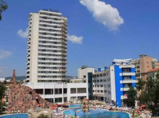 е разположен в самия център на курортен комплекс Слънчев бряг, на разстояние 150 метра от плажната ивица. Описание на хотела: Хотелът е на 20 етажа и предлага за настаняване 390 легла в двойни и единични стаи, и апартаменти, Аквапарк, казино, дискотека, ресторант, коктейл и снек барове. Ресторант Кубан предлага богат асортимент от закуски топли и студени ястия, рибни и местни блюда, десерти, както и отбрана колекция български вина. За Вас работят 4 бара и открита бар-тераса. Описание на стаите: Стаите са удобно обзаведени и разполагат с баня / WC, сателитна телевизия, телефон и балкон. Спорт / Забавления: Аквапарк — воден развлекателен център, разположен на територията на хотела, всеки ден от 09:00 до 18:00 часа отваря врати за любителите на силни усещания и весел отдих. Общия архитектурен вид на парка в стила на древните Инки, ярките цветове на Мексико ще разкрасят Вашето утро и ще Ви заредят с бодрост и настроение за цял ден. Вечерните светлини, разливащи се във водата, и обграждащи статуите на древни богове ще изпълнят Вашата вечер с неописуема романтика и колорит. Тук под мекото българско слънце целият ден е приятно прекаран. Един ден не е достатъчен да пробвате всички атракции, които Аквапарка предлага: Камикадзе Дракон Черна Дупка Косичка и други водни пързалки На територията на парка работят два бара и мексикански ресторант, предлагащ великолепен избор на деликатеси и блюда, който няма да остави равнодушен дори и най-изтънчените ценители.