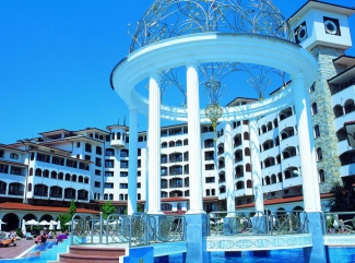 се състои от хотелите Хелена Сендс, (в чиято част са и петте ВИП вили) и Хелена Парк. Хотелите носят в себе си красотата и духа на българската Възрожденска епоха. Разделени са от естествен поток с живописни мостове. Естествените материали - камък и дърво придават на сградите непреходна сила и красота. Kомплекс Хелена резорт се простира сред просторен парк с богата растителност. Описание на хотела: Осеметажният хотел е разположен в северната част на курорта Слънчев бряг. Хотелът предлага двойни стаи, апартаменти и мезонети, разполага с лоби бар, ресторант с тераса и зала за непушачи, Рибен ресторант на територията на Хелена Сендс, Интернет зала, Закрит басейн (90 м2) с джакузи, фризьорски салон, бутик, сувенирен магазин, спа-център (масаж, сауни, козметични кабини, хидромасажна вана), модерно оборудвана фитнес зала, открит плувен басейн – шезлонги, чадъри и плажни хавлии, снек-бар до открития басейн, рибен ресторант. Хелена Ризорт е идеално място за бизнес срещи, конференции и семинари. Двете конферентни зали са напълно оборудвани, на ваше разположение са опитни професионалисти. По всяко време можете да следите бизнеса си от интернет стаята чрез високоскоростна връзка. Комплексът разполага с открит паркинг. Имаме удоволствието да предоставим и следните услуги безплатно за туристи на Хелена Сендс: Wi-fi и Кабелен Интеренет - в стаите и лобито на хотела (където това е възможно); Сейф - важи за целия престой на туристите. Описание на стаите: Всички двойни ста са просторни, комфортно обзаведени, с баня (вана), WC, сешоар, централна климатизация, сателитна телевизия, музикален канал, мини-бар, сейф под наем, телефон, балкон или тераса и допълнително легло. Еднакво обзаведените апартаменти (max 3 възрастни или 2 възрастни и 2 деца) разполагат със спално помещение и хол. Мезонетите (max 3 възрастни или 2 възрастни и 2 деца) са на две нива и разполагат със спално помещение и хол. Спорт / Забавления: Уелнес Центърът Lion's Health and Beauty SPA е истински свят на удоволствие. Спoртувайте на плажа, сред природата, или в спортните площадки и зали на Хелена Ризорт. Ние предлагаме 2 червени тенис корта срещу заплащане, баскетбол, водна гимнастика, билярд срещу заплащане, тенис на маса. Спортният център предлага модерно фитнес оборудване, аеробика и закрит басейн. Отделете време за любимия си спорт, но не забравяйте, че никога не е късно да научите нещо ново. Нащите обучени инструктори ще ви посветят време и внимание. За децата: Наслаждавайте се на вашата почивка докато децата ви изживяват незабравими приключения. Усмихнати момчета и момичета развличат най-малките гости на Хелена Ризорт в детския кът, специално оборудван с люлки, катерушки и малък басейн.