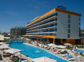 е разположен на плажа в Слънчев бряг и предлага открит басейн, градина, климатизирани стаи с балкон и 2 а-ла-карт ресторанта.