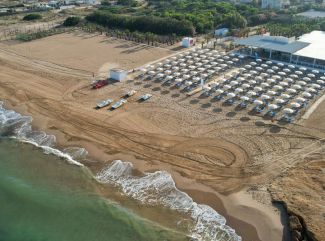 Плажът е оборудван с чадъри и шезлонги, които се ползват безплатно от гостите на хотела по 1 чадър и 2 шезлонга на стая до изчерпване на количеството, душове и тоалетни. Има бар срещу заплащане и ресторант, където може да си ползват обяда безплатно при предварителна резервация от предходния ден. Има игрища за различни игри - волейбол, футбол, тенис.