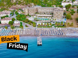Хотелът се намира на 153 км. от летище Милас, на 115км от летище Даламан, на 20 км. от центъра на Мармарис, в местността Турунч, на брега на морето. Построен през 2015 г., с обща площ от 12 000 м2 . Стаи: Хотелът разполага общо с 213 стаи, всички оборудвани с климатик, телевизор, телефон, баня с вана, сешоар, мини бар (безплатен), сейф, балкон, интернет. Почистване на стаите – всеки ден, смяна на спалното бельо и кърпите – 3 пъти в седмицата. В хотела: Основен ресторант, 2 а-ла-карт ресторанта (с предварителна резервация), 5 бара, 1 открит и 1 закрит басейн, водни пързалки, магазини, СПА център, конферентна зала, паркинг. За децата: Детско меню, 2 детски басейна, детска площадка, мини клуб (4-12 г.), мини дискотека. Безплатни услуги: Сауна, турска баня, парна баня, джакузи, фитнес, аеробика, тенис на маса, софт анимация. Платени услуги: Масаж, фризьор, детегледачка, магазини, игрални автомати, моторни водни спортове. ПЛАЖ: Собствен, пясъчен – чадъри и шезлонги на плажа и при басейна – безплатно, плажни кърпи – срещу депозит. Хранене: Ultra All Inclusive - закуска, обяд, вечеря и междинни хранения на шведска маса, местни и някои вносни алкохолни и безалкохолни напитки - без лимит. |
