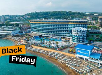 Намира се на 90 км. от летище Анталия, на 95 км. от центъра на Анталия, на 30 км. от центъра на Алания, на 1 км. от селището Окурджалар, на брега на морето. Посторен през 2010 г., с обща площ 24.000 м2. Стаи: Хотелът разполага с общо 598 стаи, разположени в една 10-етажна основна сграда, от които 537 Standard room (с изглед суша или море - 26-36 m²), 29 Doublex family land view (на 2 нива, всяко от които има 1 спалня и 1 баня, 65–75 м2); 12 Family room sea view (2 спални – 50 м2). Всички стаи са оборудвани с климатик, телевизор, телефон, баня с душ, сешоар, сет за кафе/чай, минибар (вода, безалкохолни напитки, бира – безплатен), сейф (безплатен). Почистване на стаите и смяна на кърпите - всеки ден, смяна на спалното бельо - 2 пъти в седмицата. В хотела: Основен ресторант, 6 а-ла-карт ресторанта (срещу заплащане), сладкарница, 7 бара, дискотека, 3 открити и 1 закрит басейн, 3 водни пързалки, СПА център, магазини, 2 конферентни зали. ЗА ДЕЦАТА: Открит и закрит детски басейн, мини клуб (4-12г.), детска анимация, мини кино, мини диско. БЕЗПЛАТНИ УСЛУГИ: Сауна, турска баня, парна баня, фитнес, аеробика, тенис на маса, 2 тенис корта, дартс, боча, анимация, жива музика, тематични партита, Wi-Fi (в Лоби). ПЛАТЕНИ УСЛУГИ: Масаж, пилинг, фризьор, химическо чистене, лекар, детегледачка, осветление за тенис корт, билярд, боулинг, наем на велосипеди, водни спортове, интернет кафе, рент - а кар. ПЛАЖ: Собствен, платформа (4500 m2). Чадъри, шезлонги и матраци на плажа и при басейна - безплатно. Плажни кърпи – срещу депозит. Хранене: Ultra All Inclusive - закуска, обяд и вечеря на шведска маса, междинни хранения, алкохолни и безалкохолни напитки - без лимит (съгласно концепцията на хотела). Хотелът има право да прави промени в концепцията, без да уведомява предварително туроператора за наложените промени. |