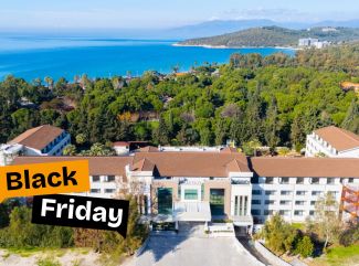 Намира се на 65 km от летище Измир, на 124 км от летище Милас, на 5 км. от центъра на Кушадасъ, на 250 м. от брега на морето. Построен на обща площ от 12 500 кв.м. Стаи: Хотелът разполага с 196 стаи, от които 166 стандартни (25 -28 m² ) , 28 фамилни (спалня и всекидневна, 38 m² ) и 2 стаи за хора с увреждания (25 -28 m² ). Всички стаи са оборудвани с климатик, телевизор, телефон, Wi-Fi, баня с душ / вана, сешоар, минибар (бутилка вода при настаняване), сейф (безплатно), балкон. Почистване на стаите - всеки ден, смяна на кърпите и спалното бельо 2 пъти в седмицата. В хотела: Oсновен ресторант, 1 а-ла-карт ресторант, снакс ресторант, лоби бар, открит басейн, ТВ зала, тенис на маса, билярд, волейбол, баскетбол. За децата: Детски басейн, 2 водни пързалки Безплатни услуги: Анимация, турско кафе ( на лоби бар), Wi-Fi в стаите и общите части, паркинг. Платени услуги: Лекар, химическо чистене. Хранене: All inclusive - закуска , обяд, вечеря, допълнителни хранения, местни алкохолни и безлкохолни напитки без лимит (съгласно концепцията на хотела). Плаж: Собствен, пясъчен на 400 м от хотела. Шезлонги и чадъри на плажа и при басейна - безплатно. |