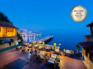 Хотелът е разположен на 88 км. от летище Анталия, на 33 км. от центъра Алания, на брега на морето. Построен през 2007г., с обща територия от 25.000 кв.м. Стаи: Хотелът разполога с 233 стаи. Всички стаи са оборудвани с климатик, телевизор, телефон, баня с душ, сешоар, минибар (ежедневно зареждане с вода), сейф, балкон или тераса. Почистване на стаите - всеки ден, смяна на спално бельо и хавлиени кърпи - 3 пъти седмично. В хотела: Основен ресторант, а - ла - карт ресторант (срещу заплащане), 6 бара, открит и закрит басейн, аквапарк с две пързалки, 2 конферентни зали, паркинг, Wi-Fi (спрямо концепцията на хотела). За децата: открит и закрит детски басейн, детегледачка (срещу допълнително заплащане), детско меню, детски клуб, анимация. Безплатни услуги: Турска баня, фитнес, тенис на маса, игрална зала, тенис, баскетболно игрище, анимационна програма. Платени услуги: Масажи, СПА център, козметични процедури, билиярд, тенис екипировка и осветление на кортовете, магазини, лекар, пералня, рент-а-кар. Хранене: All Inclusive – закуска, обяд, вечеря и междинни хранения на шведска маса, алкохолни и безалкохолни напитки местно производство без лимит. Хотелът има право да прави промени в концепцията, без да уведомява предварително туроператора за наложените промени. Плаж: Собствен пясъчно-чакълест плаж. Чадъри, шезлонги и матраци на плажа и при басейна - безплатно. Плажни кърпи - срещу депозит. |
