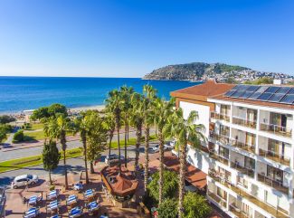Хотелът се намира на 800м. от центъра на гр.Алания на 125км. от летище Анталия. Построен е през 1986г., с обща площ от 5400 м2., реновиран през 2012г. 3 звезден хотел, само на 1 км от търговските и развлекателни места в центъра на Алания. Можете да се стигнете лесно с автобус и такси до центъра на града. Стаи: Хотелът разполага с 222 стаи. Всички стаи са оборудвани с: климатик, телефон, телевизор, сателитни канали, сешоар, минибар, сейф, санитарен възел. Почистване на стаите - всеки ден. STANDARD ROOM- Разполага с две еденични легла или спалня, всички стаи имат баня с тоалетна. Капацитет максимум 2+1. Обща площ 16м2. STANDARD ROOM LARGE- Разполагат с 1 спалня или с 1 голямо единично легло + 1 стандартно единично, всички стаи имат баня с тоалетна. Обща площ на стаята 20 м2. Максимум капацитет за настаняване: двама възратни + две деца или 3 възрастни + 1 дете. APARTMENT А- Разполагат с 1 спалня и 1 отделна стая с две единични легла. Във всеки апартамент има баня и тоалетна. Обща площ на апартаментите 30м2. Максимум капацитет за настаняване: 4 човека. АPARTAMENT B- Разполагат с 2 спални и една допълнителна стая с 4 отделни легла, от които два са под формата на диван. Всеки апартамент има баня с тоалетна. Обща площ на апартамента: 40м2. Максимум капацитет за настаняване- 6 човека. BUNK BED ROOM B- Разполагат с 1 спалня + 1 голямо еденично легло + 1 двуетажно легло. Всяка стая разполага с баня и тоалетна. Общата площ на стаята: 15м2. Максимум капацитет за настаняване- 3 възрастни или двама възрастни с две деца или трима възрастни с едно дете. HANDYCAP ROOMS- 1 спаня или две единични легла. Всяка стая разполага с баня и тоалетна. Обща площ на стаята 15м2. Капацитета на тази стая е 2 човека. В хотела: Основен ресторант, а - ла - карт ресторанта (срещу заплащане) 4 басейна от които 1 основен 134 м2., малък басейн 28м2., 2 детски басейн 7м2., лоби бар, бар при басейна, бар на плажа, бар в ресторанта. За децата: детска площадка, детски басейн Безплатни услуги: Външни басейни, детски басейни, чадъри на басейна, матраци на басейна, шезлонги на басейна, фитнес. Платени услуги: барове, а-ла карт ресторна, шезлонги, чадъри, матраци и къпри на плажа на морето, спа център, масажи, пилинг, сауна, турска баня. Хранене: BB - Закуска на шведска маса HB - Закуска и вечеря на шведска маса All inclusive - закуска, обяд, вечеря и междинни хранения на шведска маса, местни алкохолни и безалкохолни напитки без лимит. Плаж: На плажа се заплащат допълнително чадърите, шезлонгите и матраците. Плажа е пясъчно-чакълест. |