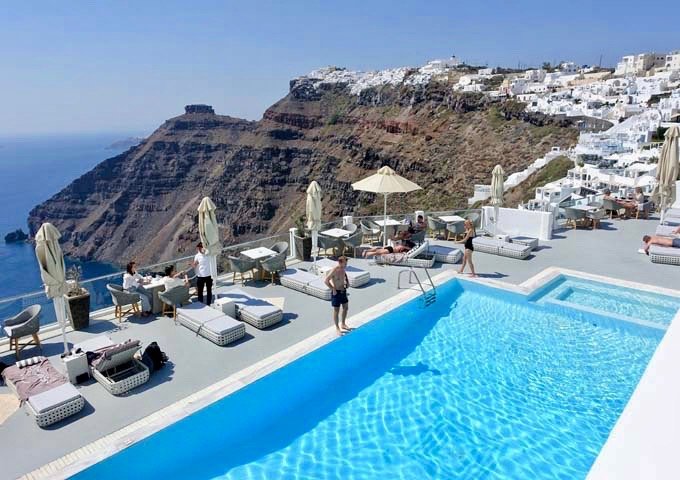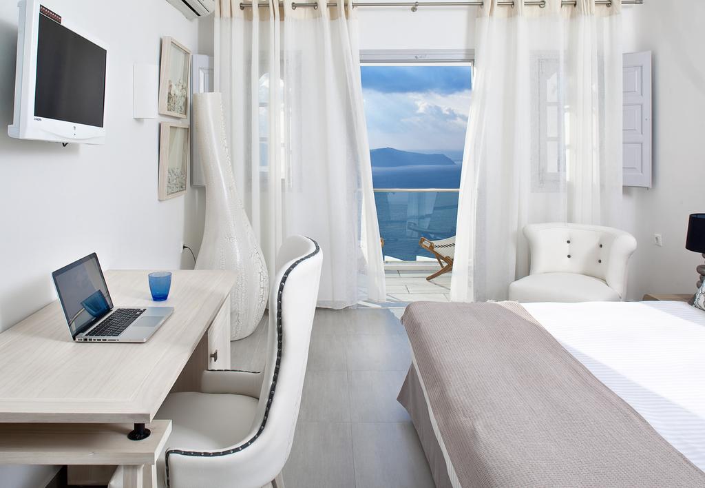 В хотела: 24 часова рецепция, басейн с шезлонги и чадъри и гледка към Калдерата, бар, Wi-Fi, СПА център. В стаите: климатик, минибар, LCD телевизор, баня с тоалетни принадлежности, Wi-Fi. Цени