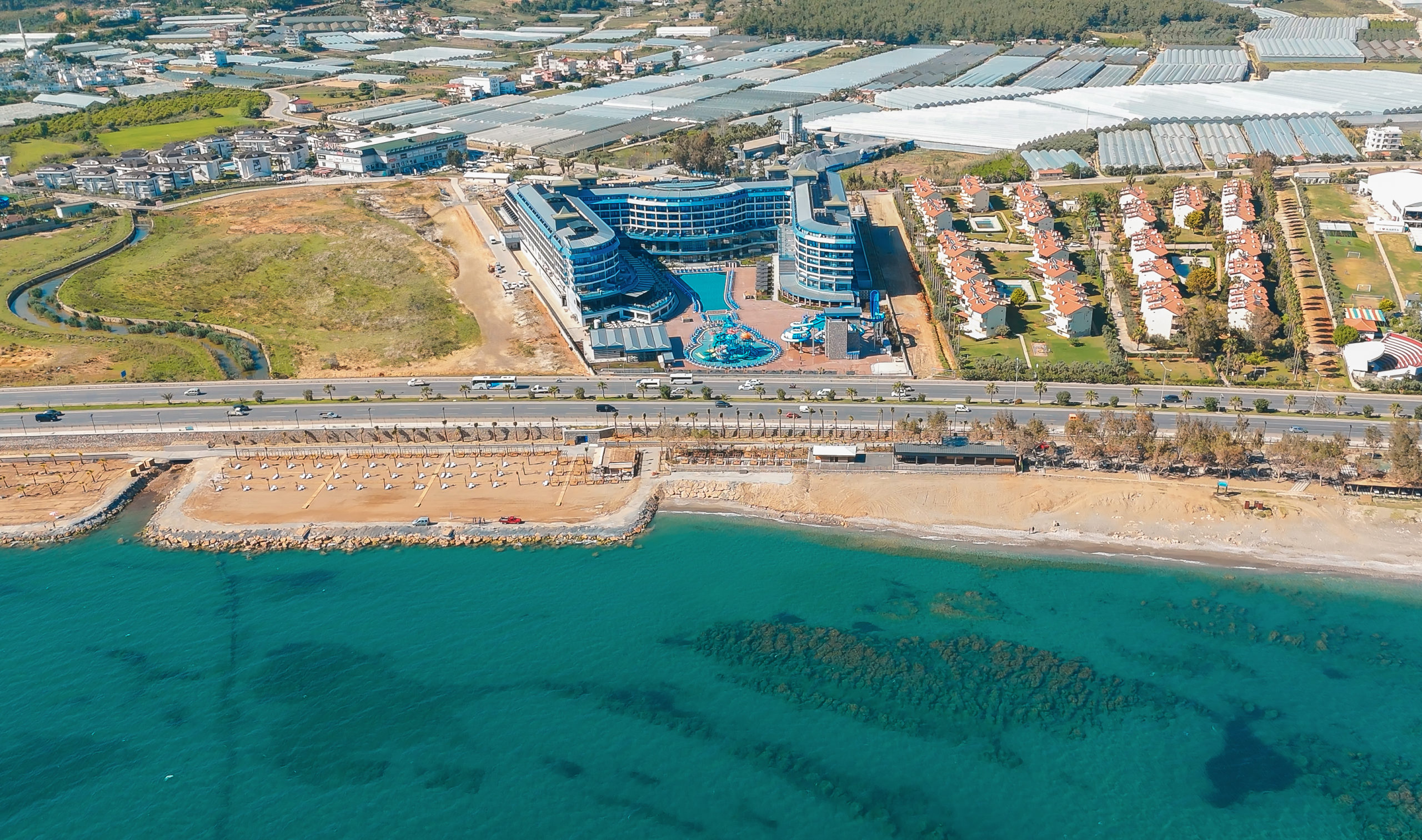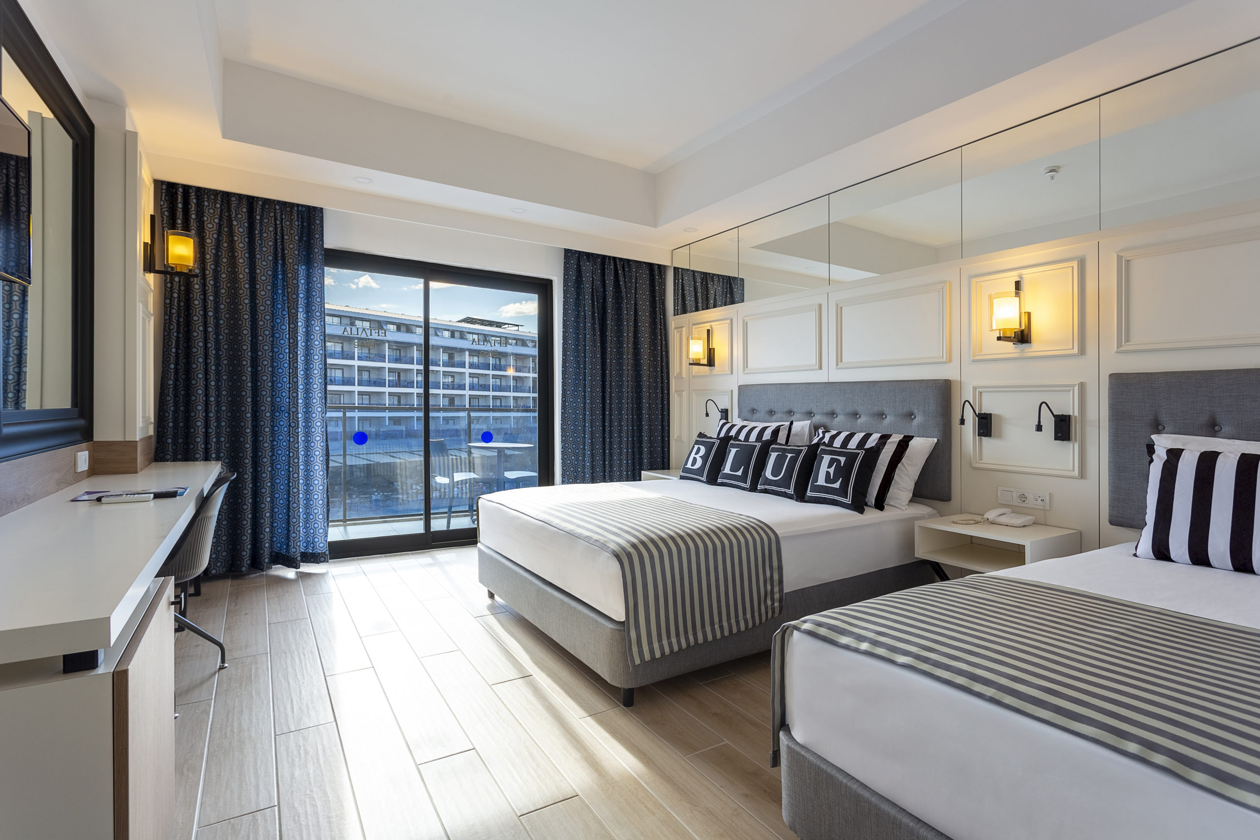 Намира се на 100 км от летище Анталия, на 110 км от центъра на Анталия, на 18 км от центъра на Алания, на 250 м от брега на морето, чрез подлез. Построен 2024 г., на обща площ от 43 000 м2. Достъп до Еftalia Island, разположен на плажа, състоящ се от аквапарк с басейни, водни пързалки и заведения. Стаи: Хотелът разполага с общо 499 стаи, разположени в 5-етажна основна сграда Main building и 1 допълнителна сграда с директен достъп до басейн - SWIM UP building. Стаи Main Building: 90 Standard room (30 м2), 101 Family Large room (1 спалня, 1 баня - 35 м2), 248 Family Room A (2 спални, 1 баня - 70 м2). Стаи Swim Up: 19 Swim Up Standart room (40 м2), 17 Swim Up 2 Bedrooms room (2 спални - разположени на 2 етажа, 2 бани - 85 м2), 7 Swim Up 3 Bedrooms room (3 спални - разположени на 2 етажа, 2 бани - 85 м2). Всички стаи са оборудвани с климатик, телевизор, телефон, баня с душ, сешоар, сет за чай/кафе, минибар (безплатен), сейф (безплатен),балкон. Почистване на стаите и смяна на кърпите – всеки ден, смяна на спалното бельо – 2 пъти в седмицата. В хотела: Основен ресторант, 1 а-ла-карт ресторант с предварителна резервация, съгласно концепцията на хотела), сладкарница, бургер бар Burgerland (24/7), 9 бара (1 от които 24/7 и 2 от които са разположени на територията на Etftalia Island, 8 открити басейна, водни пързалки, СПА център, дискотека (на територията на Etftalia Island), магазини, конферентна зала, паркинг. За децата: 1 детски басейн, водни пързалки, детска площадка, мини клуб (4-12г), Безплатни услуги: Сауна (в определени часове), фитнес, дартс, плажен волейбол, водна гимнастика, турнири, бинго, жива музика, анимация, Wi-Fi (в общи площи). Платени услуги: Масаж, пилинг, фризьор, фотограф, лекар, химическо чистене, осветление за футбол, водни спортове, рент-а-кар. Хранене: Ultra All Inclusive - закуска, обяд и вечеря на шведска маса, междинни хранения, алкохолни и безалкохолни напитки - без лимит (съгласно концепцията на хотела). Плаж: Собствен, на 250 м. от хотела, пясъчно-чакълест, чрез подлез. Чадъри и шезлонги на плажа и при басейна - безплатно. Плажни кърпи – срещу депозит. Хотелът има право да прави промени в концепцията, без да уведомява предварително туроператора за наложените промени. |