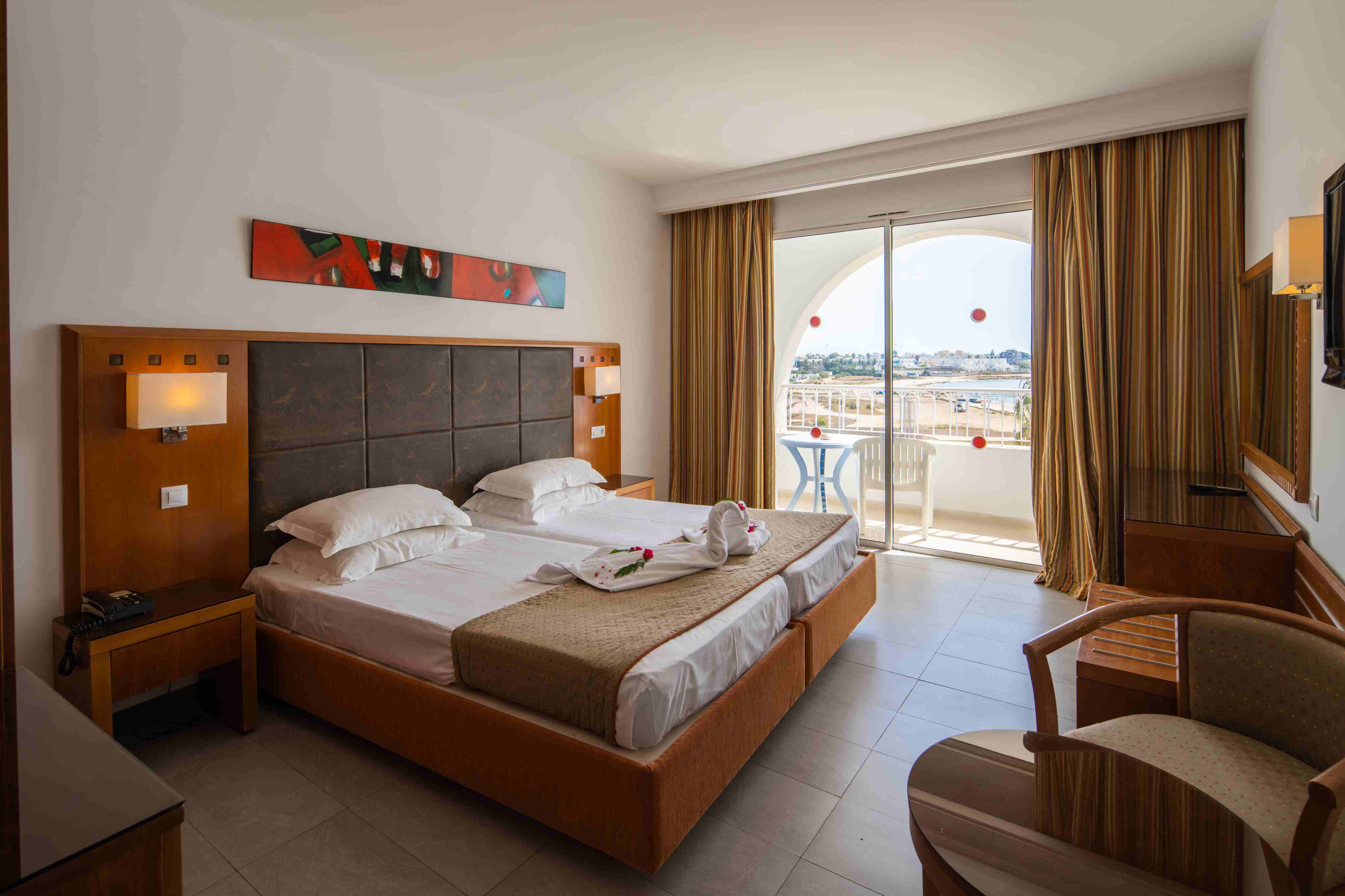 Хотелът се намира на 65 км от летище Енфида, на 1 км от центъра на Набул, на брега на морето. Построен през 1986 год, с обща площ от 4 хектара, последна основна реновация 2012 год. Стаи: Хотелът разполага с 361 стаи, разположени в основна сграда с асансьори: STANDARD ROOM (21 кв.м), STANDARD SEA VIEW (21 кв.м), FAMILY ROOM (35 кв.м) и FAMILY ROOM SEA VIEW (35 кв.м). Всички оборудвани с климатик (от 15.06. до 15.09.), телевизор, баня с душ/вана, сешоар, минибар (празен), сейф, Wi-Fi и балкон (някои стаи не разполагат с балкон). В хотела: Основен ресторант Le Phoenix, ресторант барбекю Carissa (а ла карт обяд, 2 безплатни посещения седмично при предварителна резервация), а ла карт ресторант Le bonsai (1 посещение безплатно за вечеря, след предварителна резервация), а ла карт ресторант на плажа Coco Beach (срещу заплащане), лоби бар L’Orchidée, бар до басейна с пързалките, основен бар bar Carissa, мавританско кафене (срещу заплащане), открит басейн с детска зона, закрит басейн, водни пързалки, тенис корт, мултифункционален корт, СПА център, 5 конферентни зали, магазин, дневна и вечерна анимация за деца и възрастни, асансьор, банкомат, обмяна на валута, 24 часова рецепция, студиа за йога и пилатес, професионални треньори по йога и пилатес. За децата: детски басейн, детска площадка, мини клуб (4-12 год), мини диско, детско меню в ресторанта, детски столчета, бебешка кошара и електрическа кана (при наличност и заявка), шоу за таланти, микровълнова и блендер в основния ресторант. Безплатни услуги: фитнес зала, диско и вечерни шоута, мини голф, тенис корт, пинг понг, волейбол, аеробика и водна гминастика, зумба, йога, водно поло, плажен волейбол, футбол, дартс, стрелба с лък, Wi-Fi в общите части, лоби бар и стаите. Платени услуги: масажи, хамам, СПА процедури, билярд, игрални машини, химическо чистене, водни спортове, конферентни зали и оборудване, детегледачка. Хранене: Ultra All Inclusive - закуска, обяд и вечеря, с включени алкохолни и безалкохолни напитки местно производство, които се сервират 24/7, бутилирана вода. Плаж: Собствен, на места пясъчен и на места каменист плаж, първа брегова линия. Неравномерно навлизане в морето: има зони с каменни блокове и зони с чисто и плавно с пясъчно дъно. За периода от юни до септември хотелът поставя понтонна платформа. Чадъри, шезлонги и матраци на плажа и при басейна - безплатно. Плажни кърпи - срещу депозит. *Хотелът има право да прави промени в концепцията си по всяко време, без да уведомява предварително туроператора. |